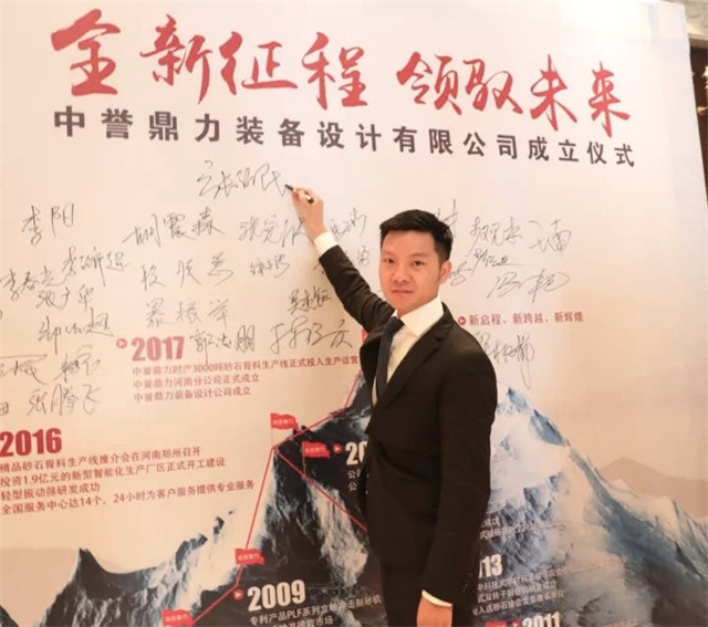 中譽鼎力裝備設計公司副總經理原文秋在簽字墻上簽名