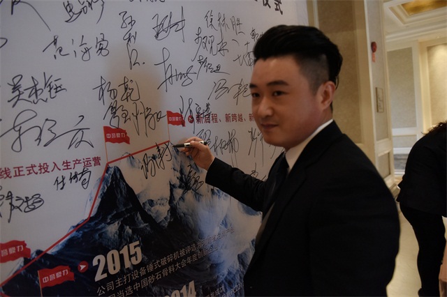 中譽鼎力裝備設計公司總經理馮濤在簽字墻上簽名