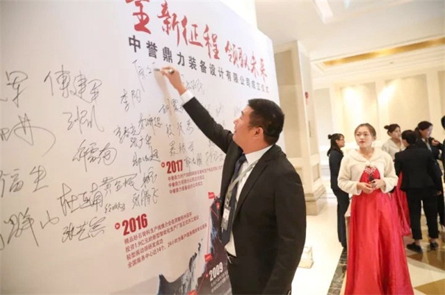 中譽鼎力裝備設計公司董事長張治民在簽字墻上簽名