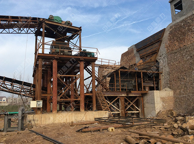 3、粗碎錘式碎石機沒有安裝篦條,出料粒度通過改變錘頭和反擊板的間隙靈活調整。